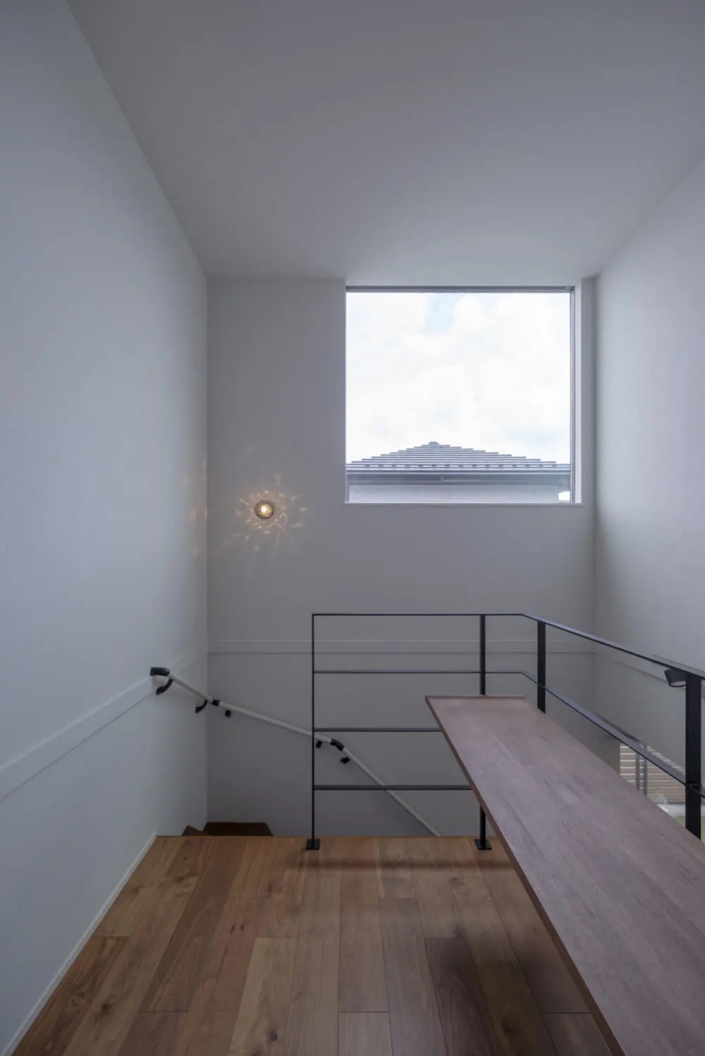 スキップ上は、将来的にスタディスペースとして使えるようカウンターを設置。天井高に合わせたスクエア窓から自然光が差し込み、明るく開放的な空間になっています。