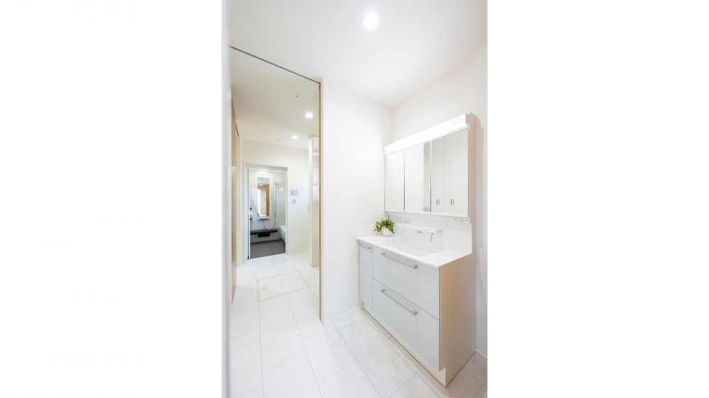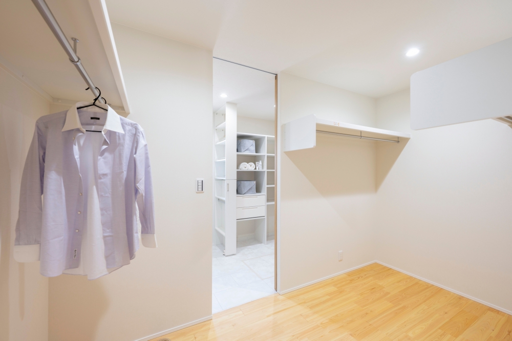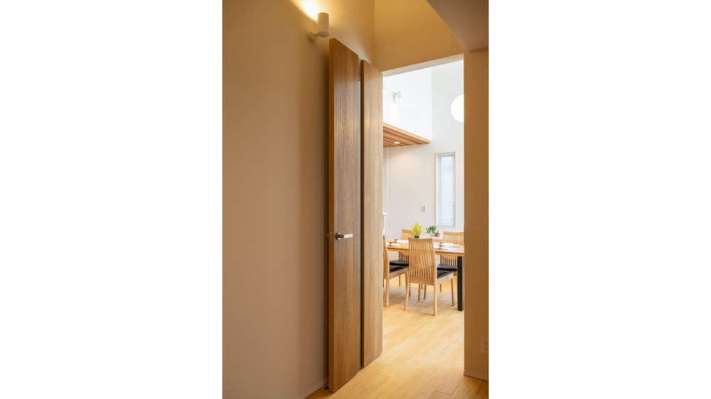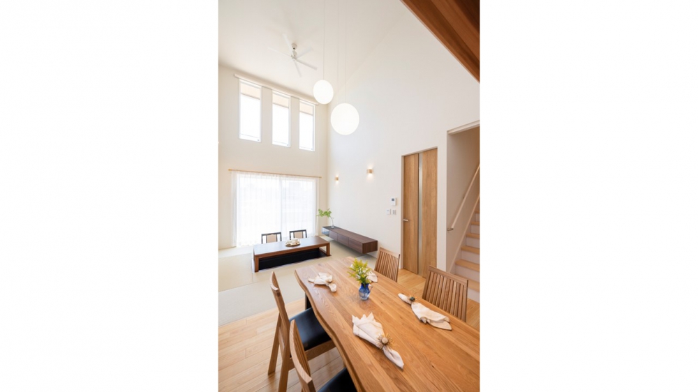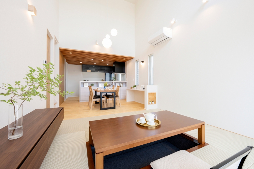 家の真ん中にファミリークロークを設けた回遊型動線で、掘りごたつリビングで3世代が家族団らんを過ごす家
