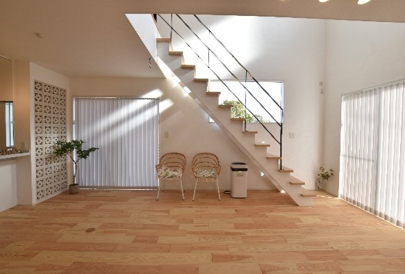 【花ブロックでおしゃれなリビングがある家】