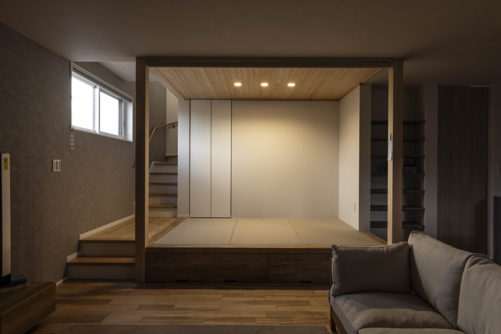【タタミコーナー】簡易間仕切りに和風なロールスクリーン 畳下には収納 幻想的