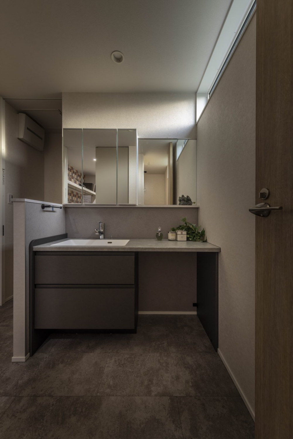 洗面室はLDKの横に配置 LDKのエアコンで環境も良く