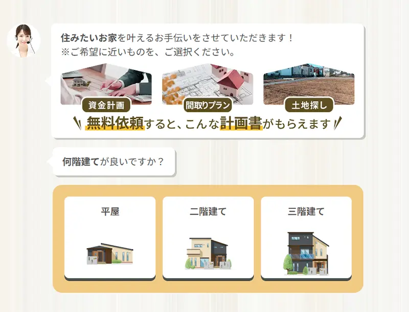 シングルマザーでも戸建てを持てるのか不安でしたが、希望を入れるだけで会社がわかって、理想のお家にが建てられました。家づくりの知識がなくても、簡単に利用できるので、オススメしたいです。