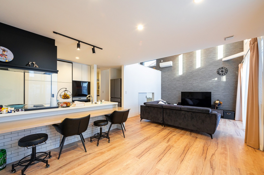 太陽光発電10.56Kwと蓄電池9.7KWh+HEMSを標準仕様とし、夏の暑さや冬の寒さなど外気温の影響をうけにくい高気密・高断熱仕様と、耐震等級3+制震装置を標準搭載した高耐久住宅で、環境や地震から大切な住まいと家族を守ります。