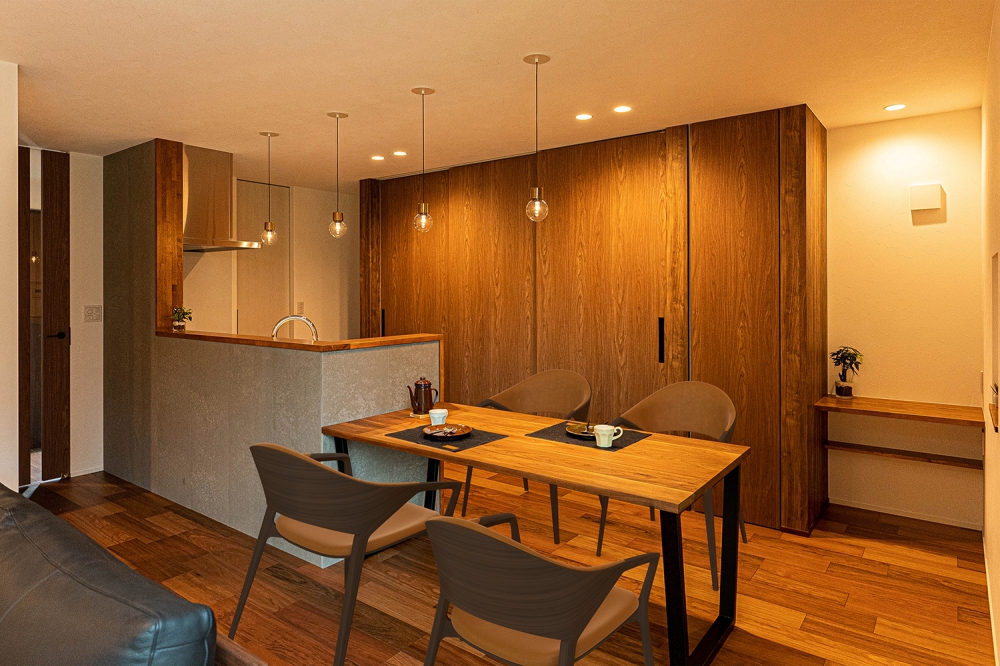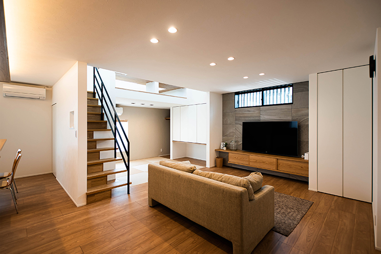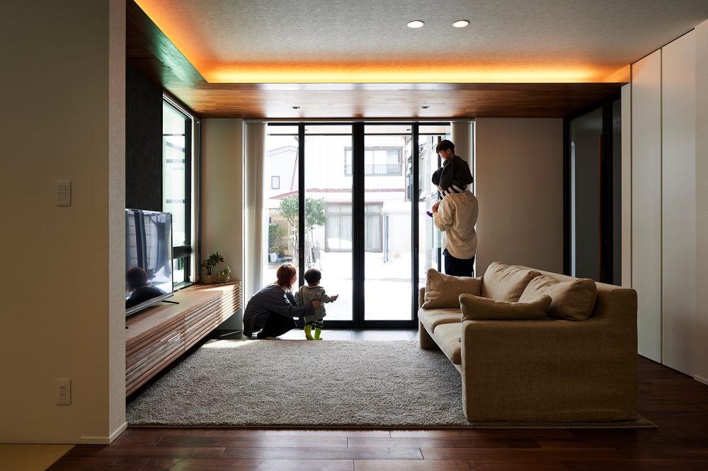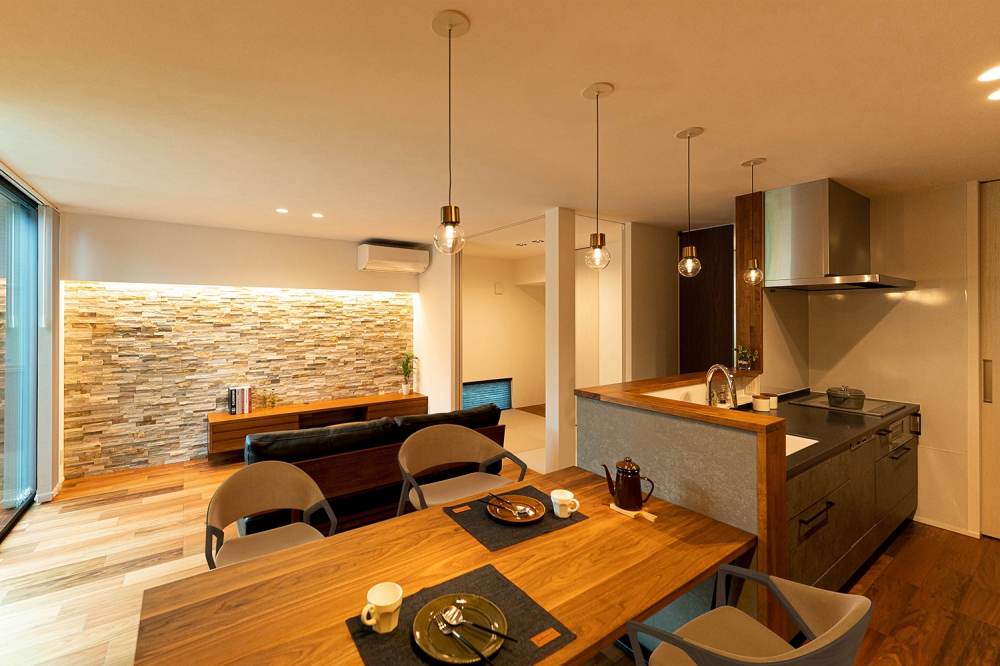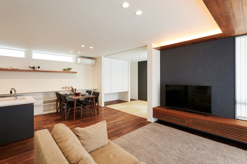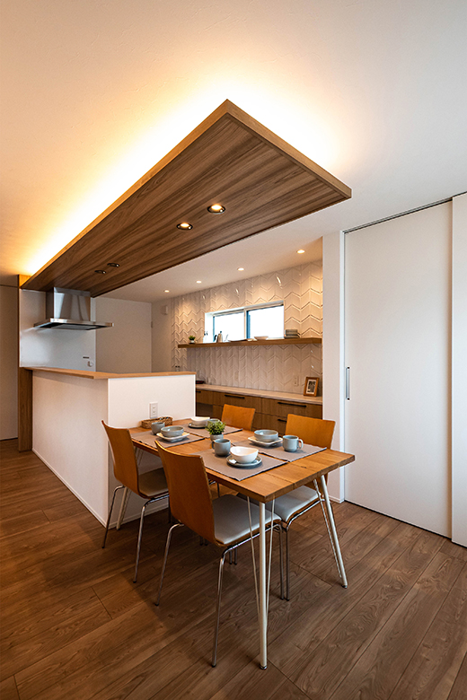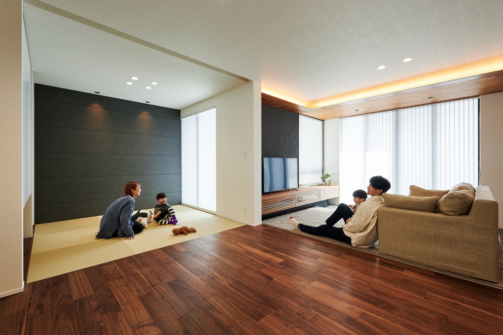 和の雰囲気をちりばめ、家族の繋がりを感じさせるLDK