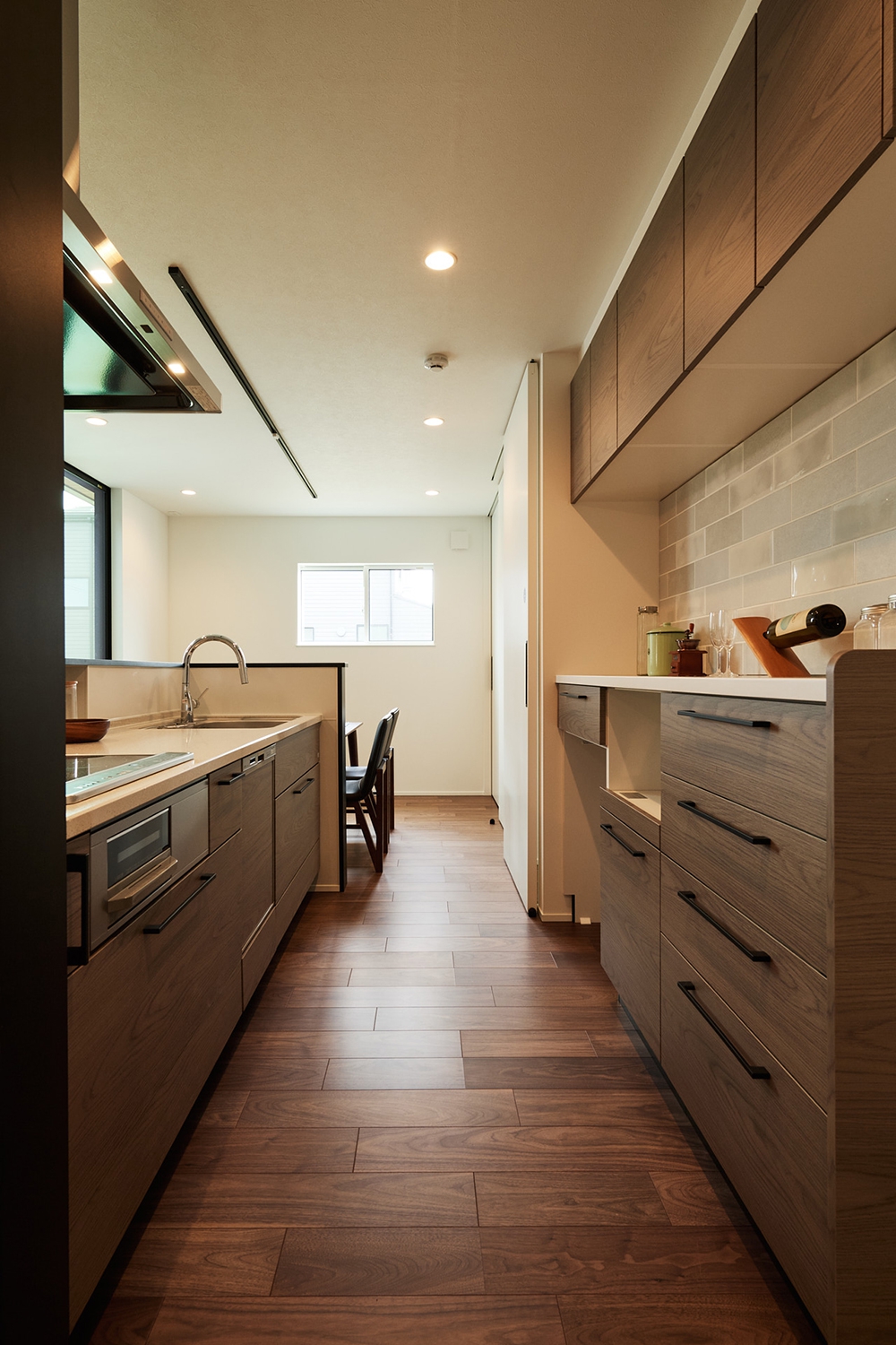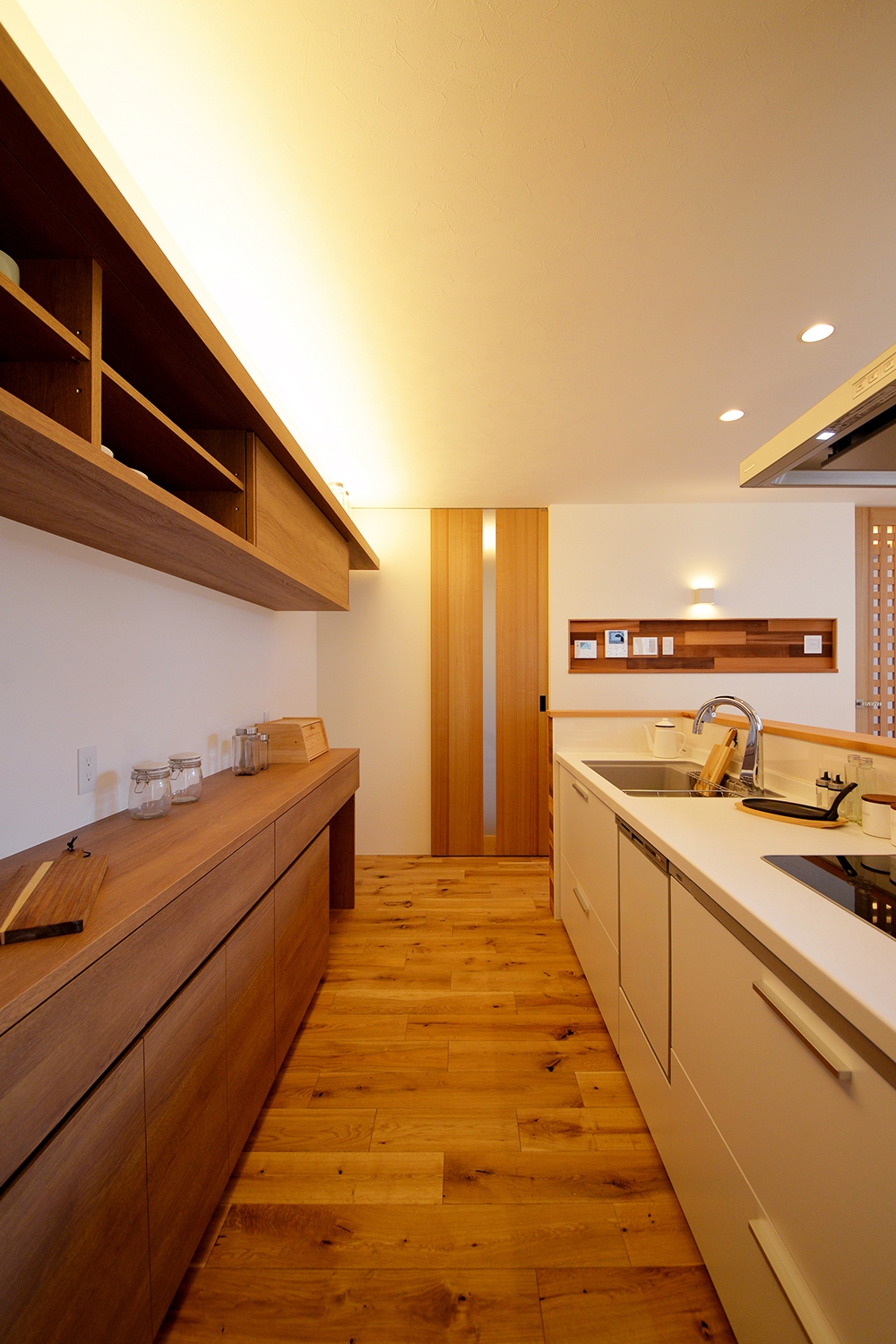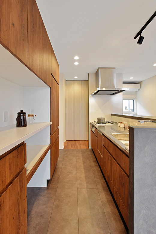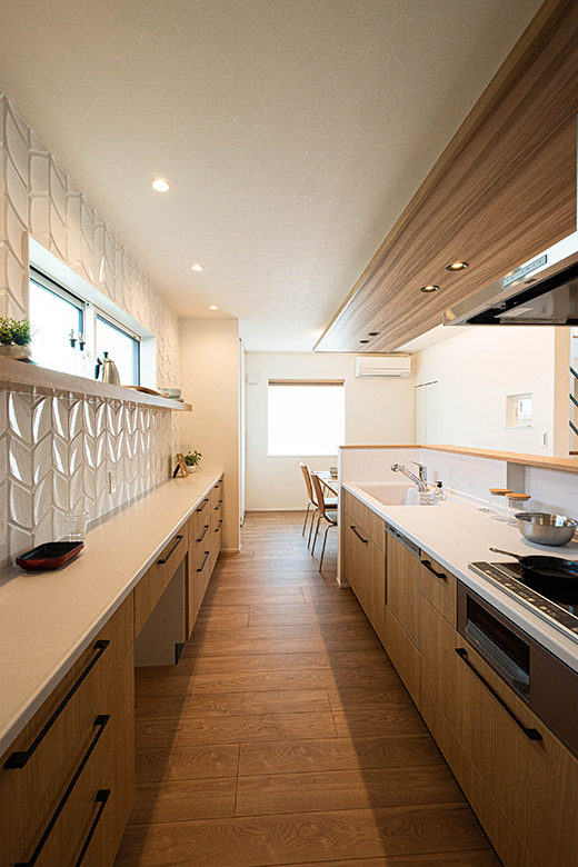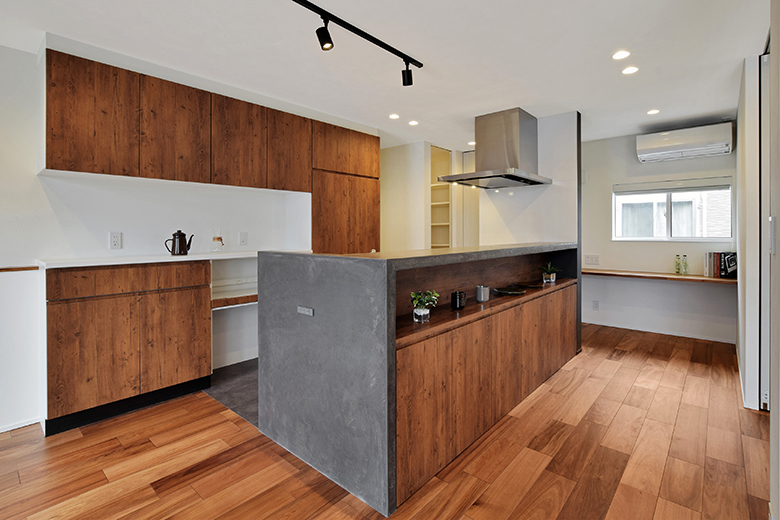 床材を立ち上げ、ライニングカウンターのアクセントへ