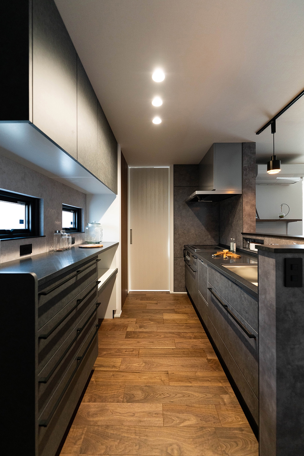 設備やドアにもこだわり、ダークトーンで揃えられた空間は一体感を生む。