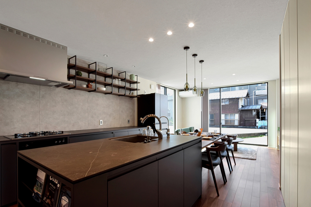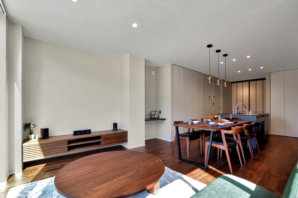 親族同居やペット共生を想定したプランニングと、こだわりの設備や造作家具、インテリアにみる設えも一見の価値。