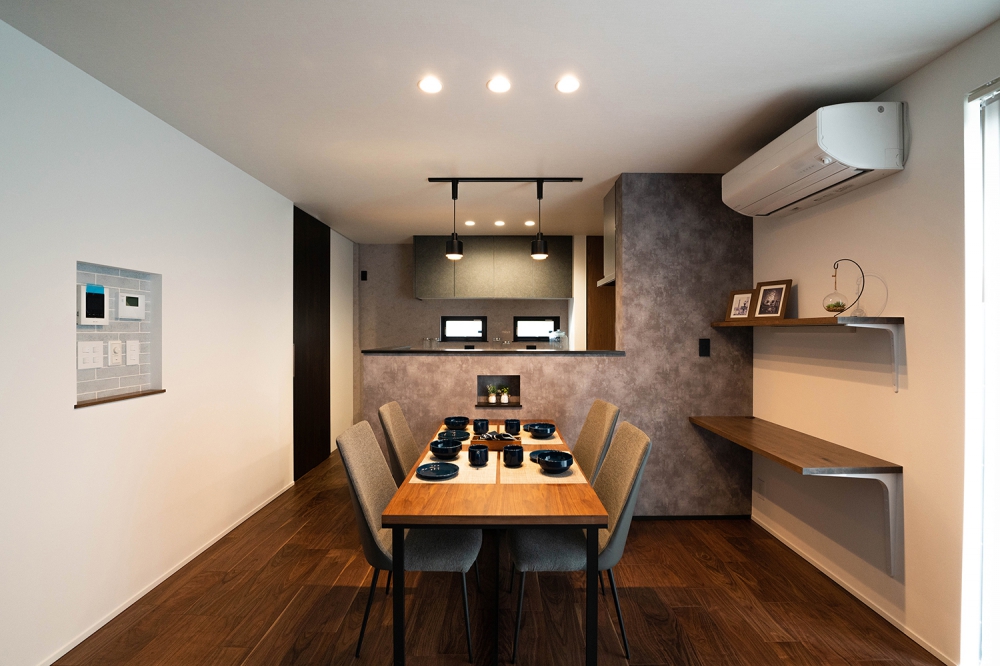 ダイニングまわりをすっきり置ける、小物ニッチを腰壁に制作