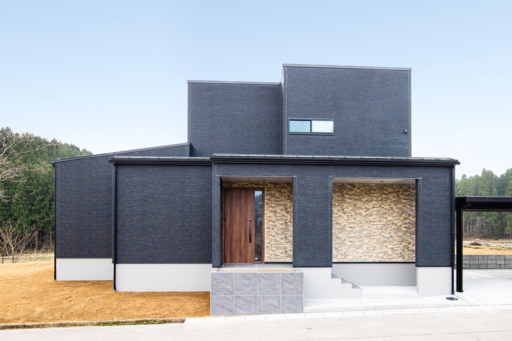 大判タイルとソリドの外壁をアクセントに張りクールでカッコいいデザインにしました。