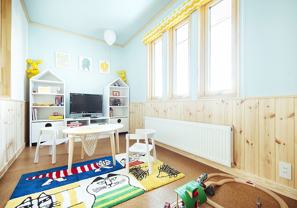 「子どもがたくさんふれるところなので、本物がいい」とリビング・ダイニングの内装は、木の趣溢れる腰壁を採用した