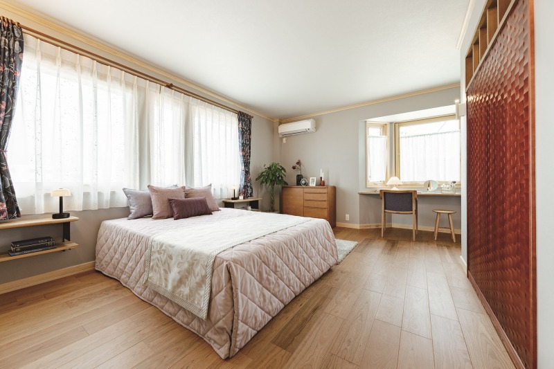 主寝室に設けられた書斎コーナー。「ここが私の特等席。本を読んだり、音楽を聴いたり。ここで過ごす時間が自然と増えました」とご主人