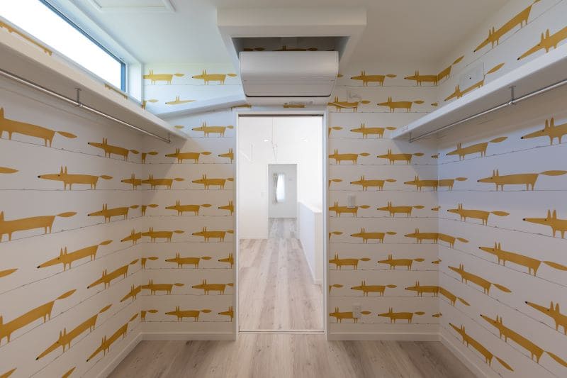 タイミ柄のクロスがおしゃれなウォークインクローゼット