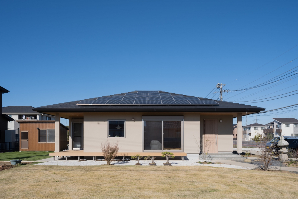 屋根は寄棟屋根の中でも方形屋根とし、和の雰囲気を大切にした外観デザインとしています。