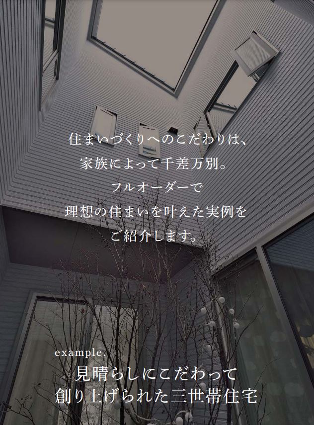 住宅の基本性能を高める先進の技術と、ご家族の夢を育み日々の暮らしを豊かに彩るデザイン性を追求した注文住宅のご提供により、ご信頼と高い満足をいただいております。