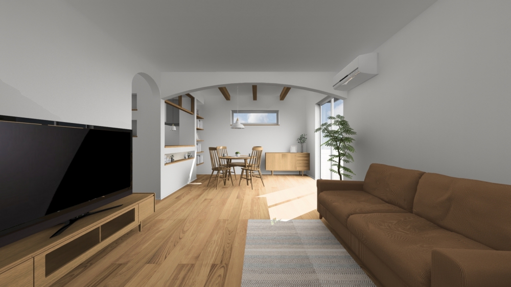 完全自由設計でかたちづくるお気に入りの空間、無垢床や漆喰といった自然素材が生み出す柔らかな雰囲気と快適さ、家族が集いたくなる、居たくなる、帰りたくなるホッとできる場所、それが皆様の住まいになってほしい。