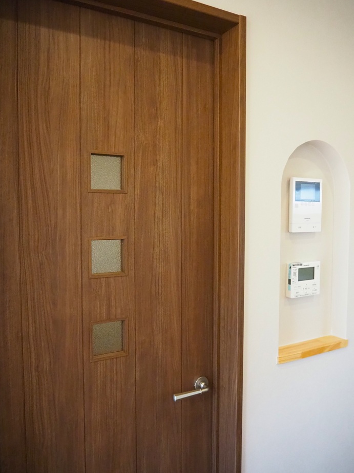 かわいいリモコンニッチや家族用のファミリークローク、子供部屋には好きな色のアクセントクロスを採用しました。
