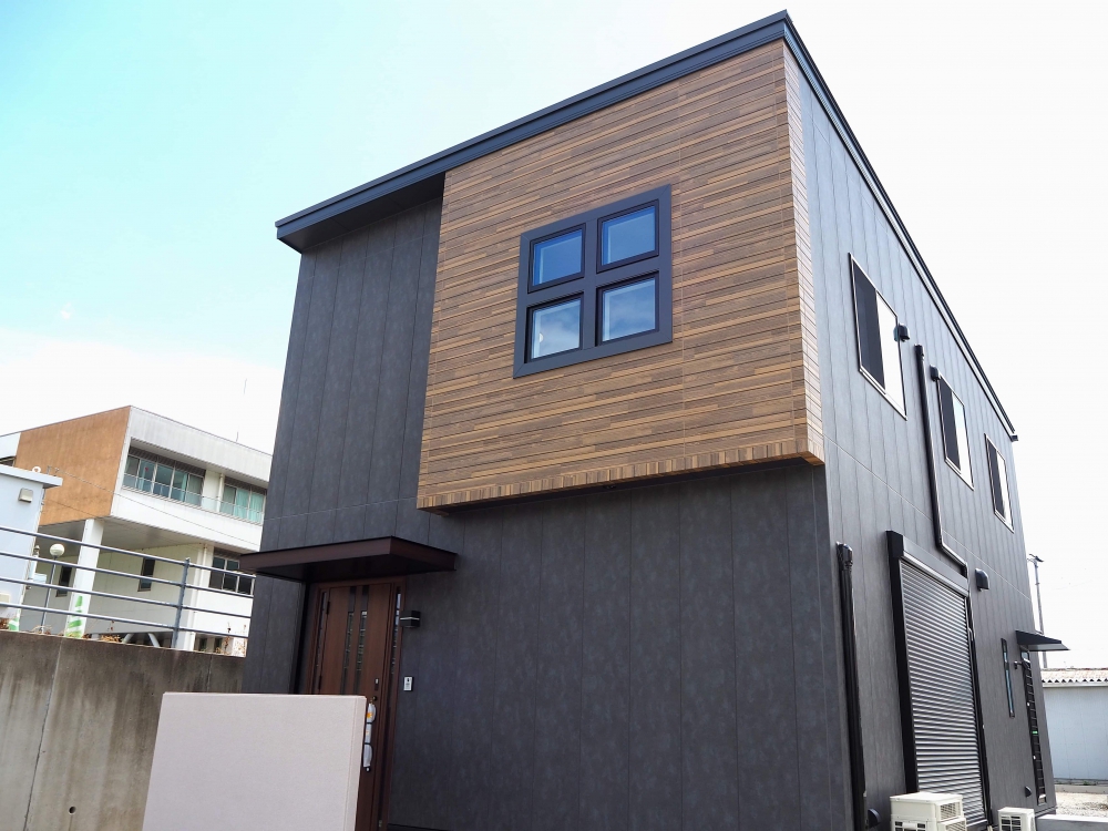 内外装ともお施主様の好きなグレー色・ブラック色を基本に、少ないカラーでまとめました。