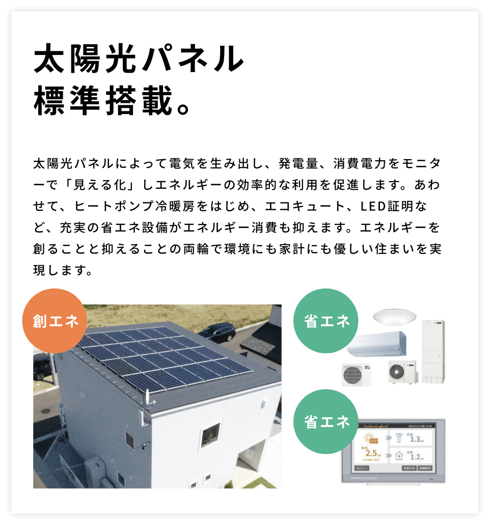 ソーラーパネルが標準で付いてて、光熱費を気にしないで生活できる家