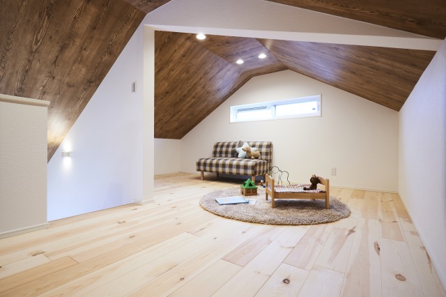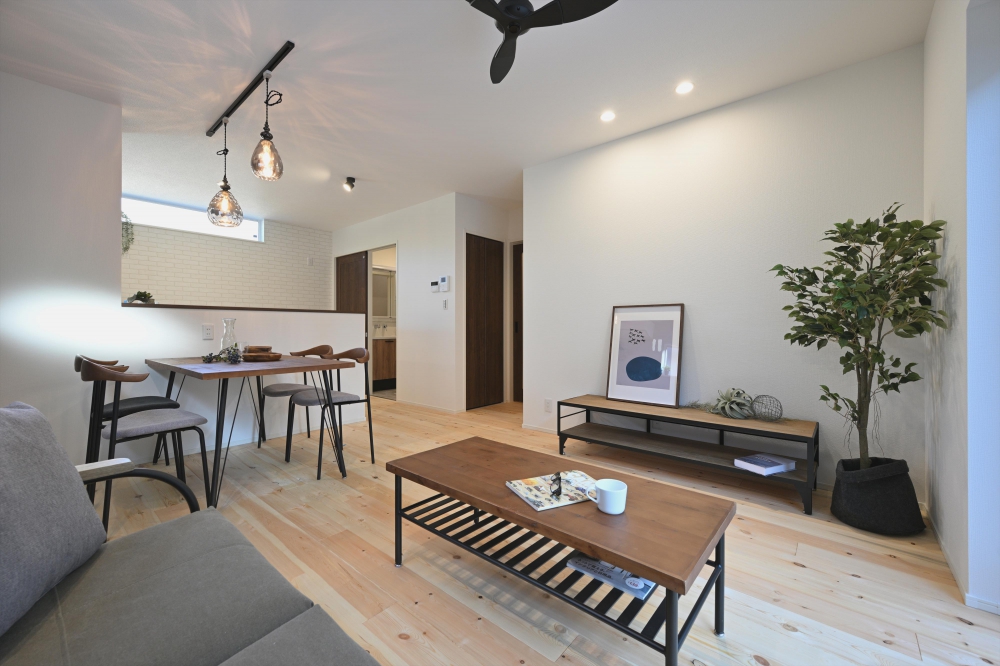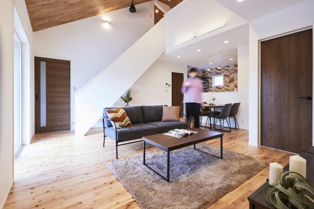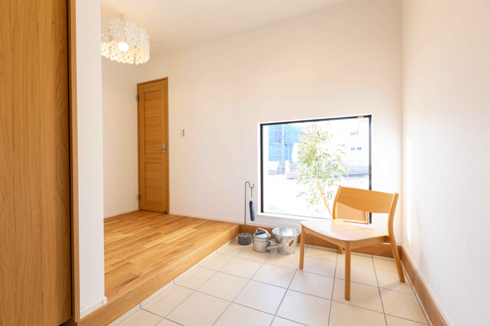 玄関→ファミリークローゼット→LDKという動線なので、LDKがいつもスッキリできる。お子様に自分でお片付けができるように声掛けがしやすいのも嬉しいポイント◎広々としたリビングには隠れ家的な雰囲気を感じさせる、和風ヌックがあり、ゆっくりと一人の時間も楽しめる。あたたかな木の優しさを、いつも感じられる居心地の良い住まいに。