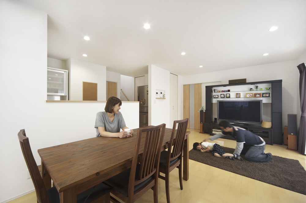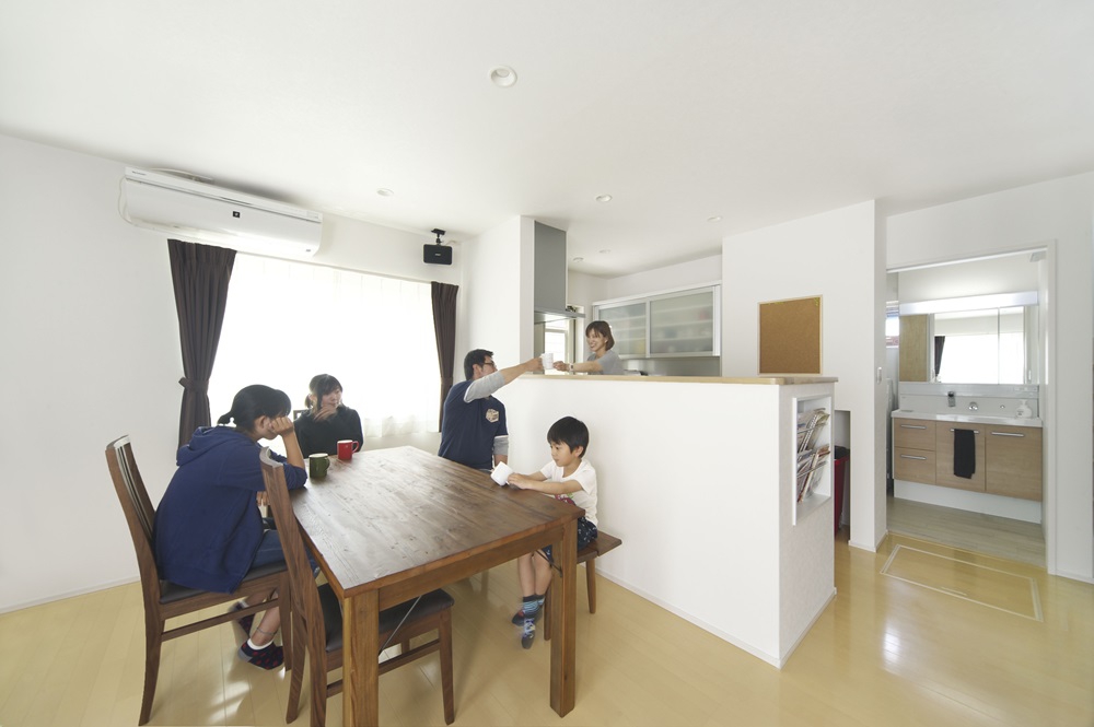 スムーズ動線で家事や掃除がしやすく、住みやすいです。ダイニングテーブルを造作して、小上がりの畳コーナーが続いているのもご提案頂き、使い勝手の良さを実感しています。