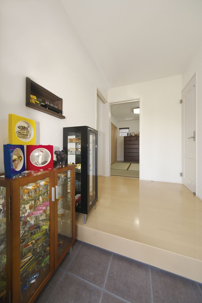 玄関のニッチは構造材の端材を利用。入って正面には、将来お母様との同居も考えて、どうしてもほしかったという和室を設計