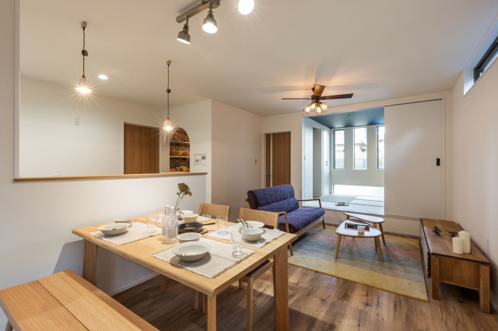 小上がりの和室があるLDK。パントリーから水回りまで回遊できるスムーズな家事動線