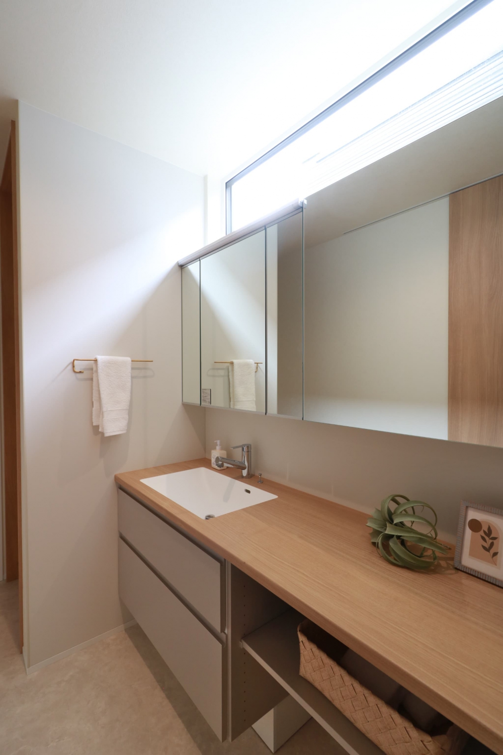 明るい日差しが差し込む広がりのあるリビングから、たっぷりと容量のある収納スペース、洗面室からバスルームへ。