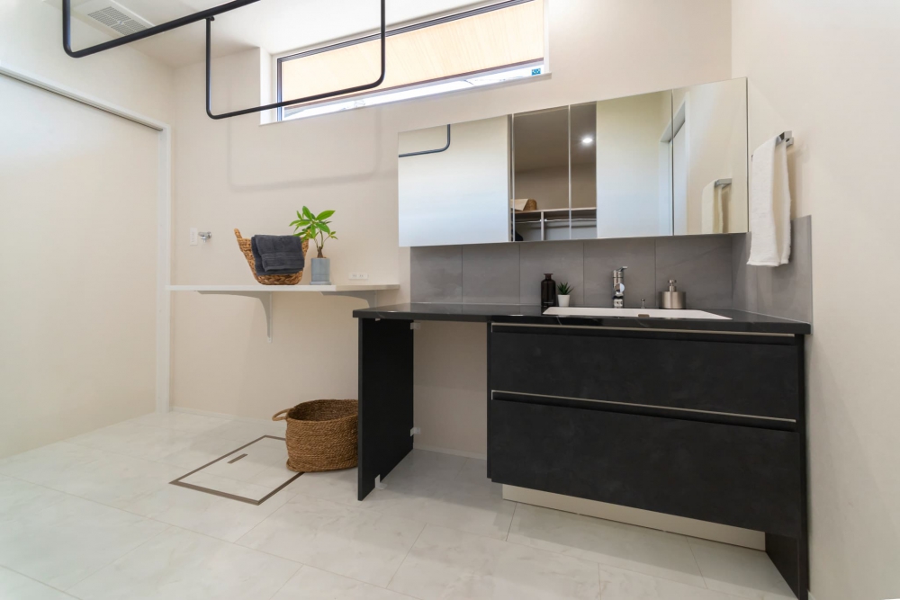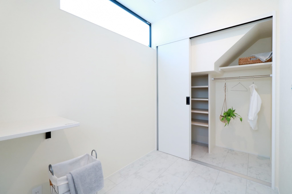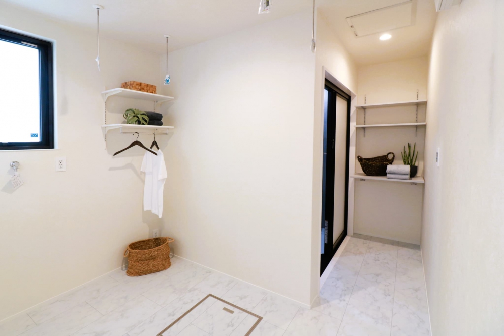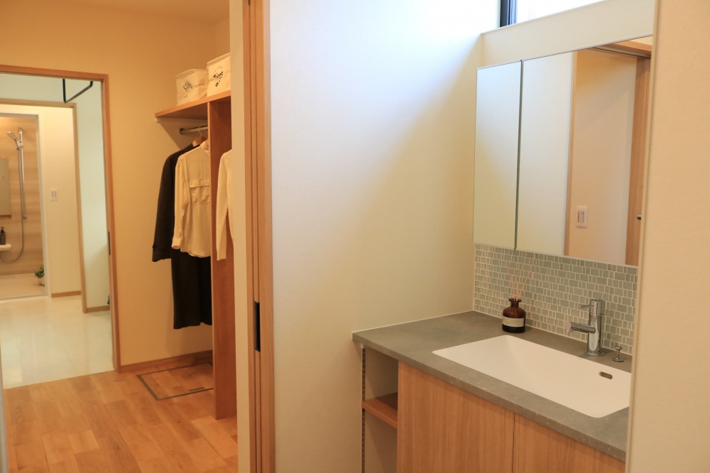 玄関から直行できる洗面室やファミリークローゼットなど、家事動線も工夫されています。