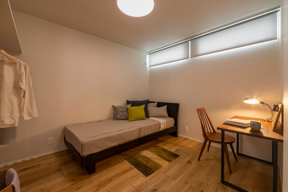 2階には明るい子供部屋と広い納戸を設置し、家族の成長に対応可能な設計です。