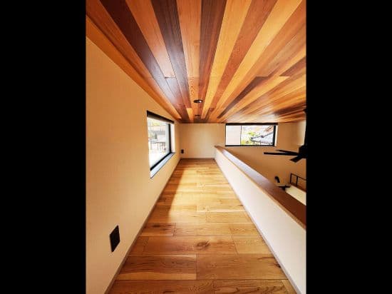 ナラ・レッドシダーの無垢材を使用した床や内装が、住まいに温かみと風合いをもたらしています。