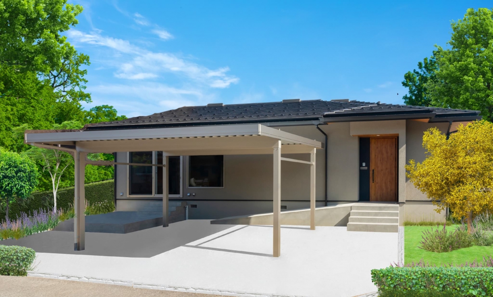 外構で視線をやさしく遮り、開放感あるリビングとウッドデッキを実現。
