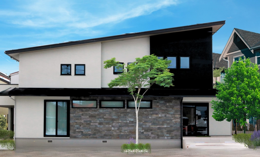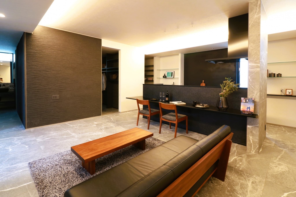自然素材の温かさとモノトーンの都会的な雰囲気が融合する邸宅です。