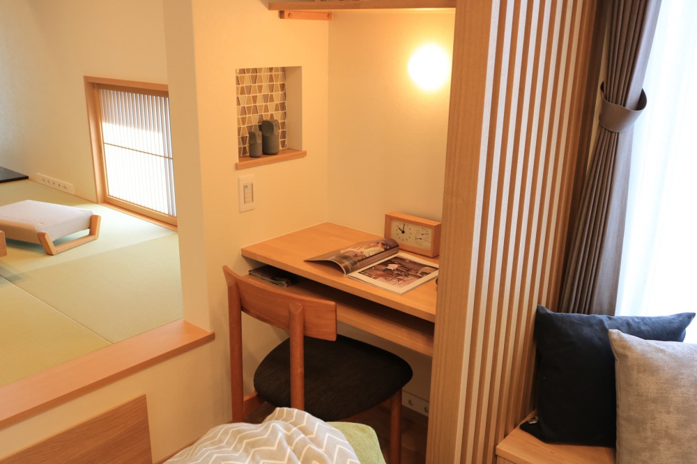 家族とふれあうやさしいタタミコーナーや、静かに自分を整える書斎スペース。
