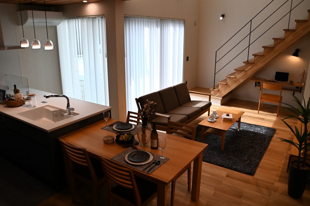2階にはライフスタイルに柔軟に対応できるもう一つのLDKと、将来の間仕切りが可能な寝室や子供部屋があり、都会的なデザインが特徴です。