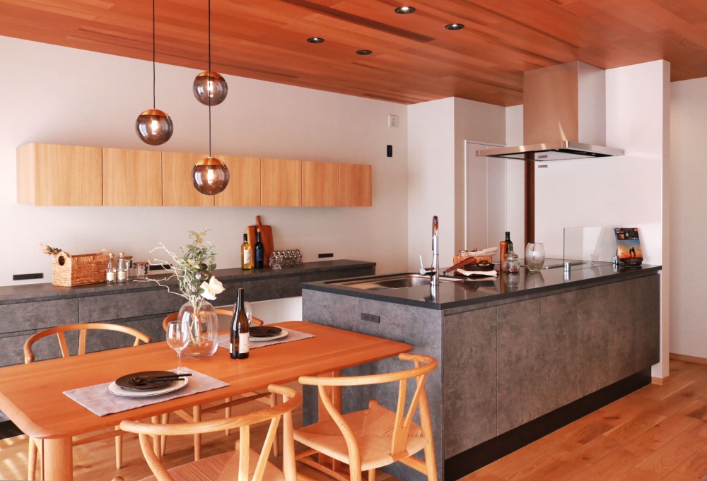 木目を活かした内装と、ナチュラルなグレーのアクセントが絶妙に調和し、洗練された雰囲気を醸し出しています。