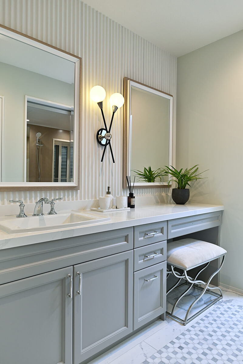 シックなグレートーンが異なる空間を優しくつなぎます。