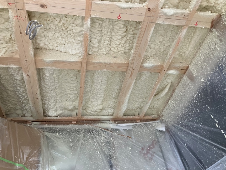 現場吹付の硬質ウレタンフォーム「Kフォーム」の断熱材は、構造躯体に隙間なく充填されるため、気密性・断熱性が高く、真夏の酷暑や真冬の冷え込みにも外気温の影響を受けにくく、365日・24時間、家中快適です。