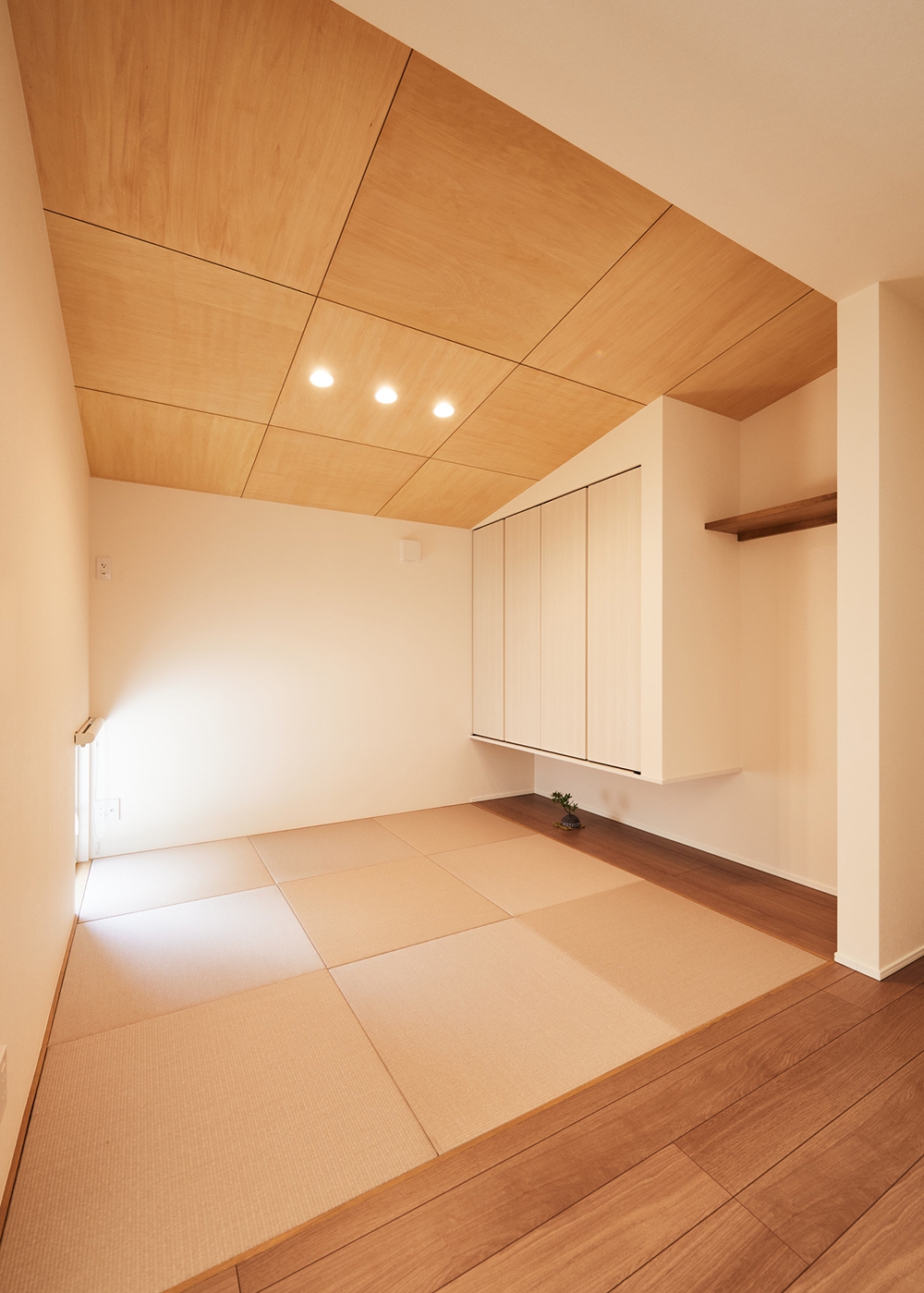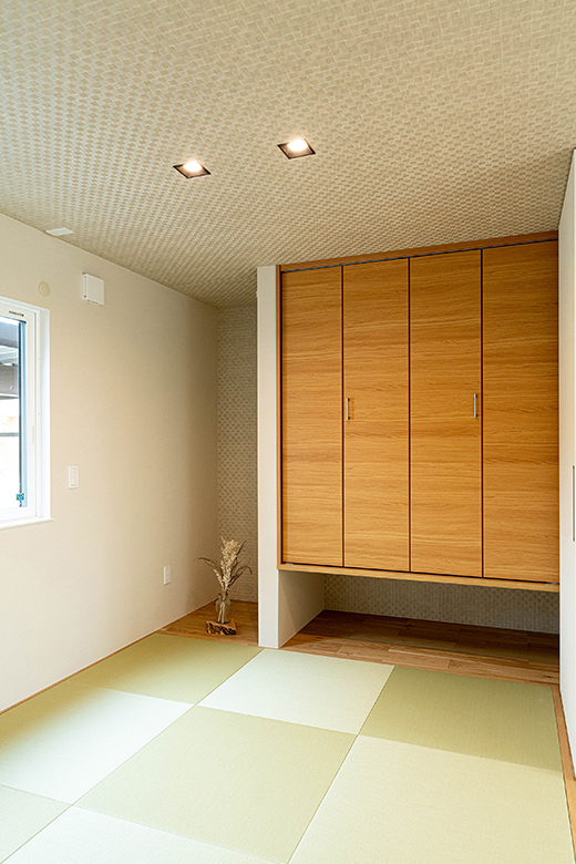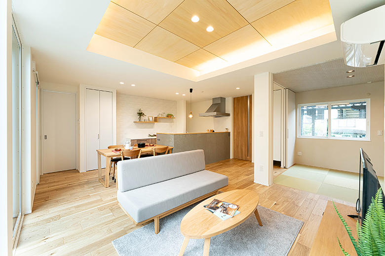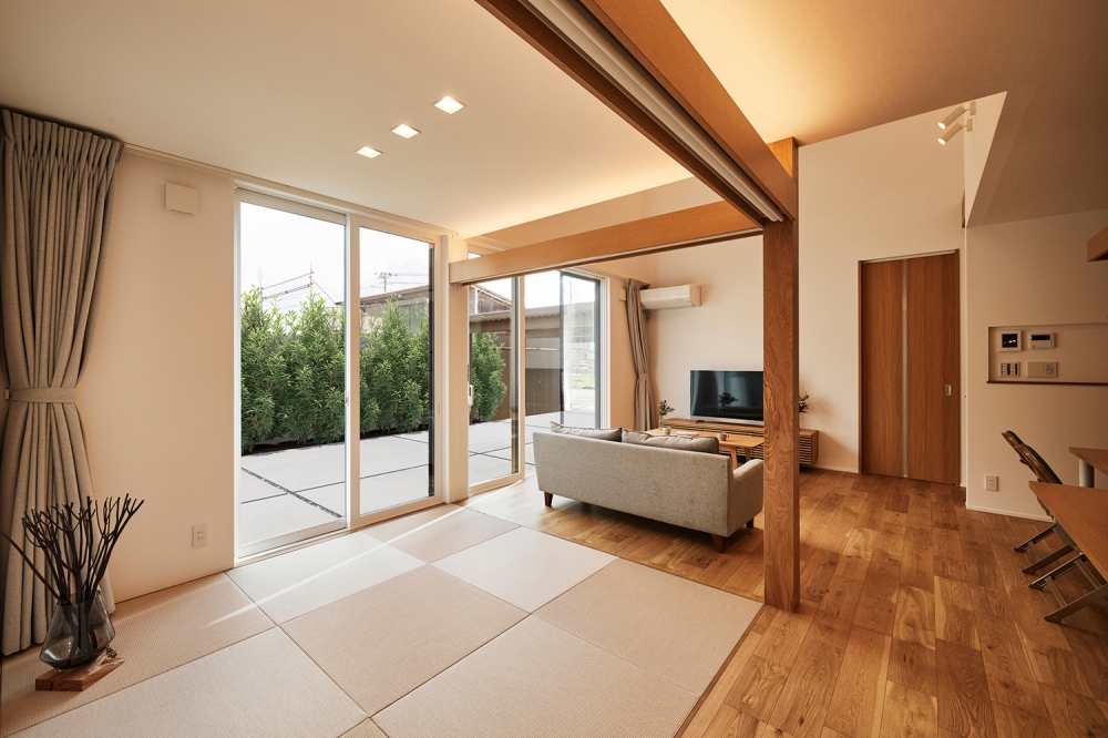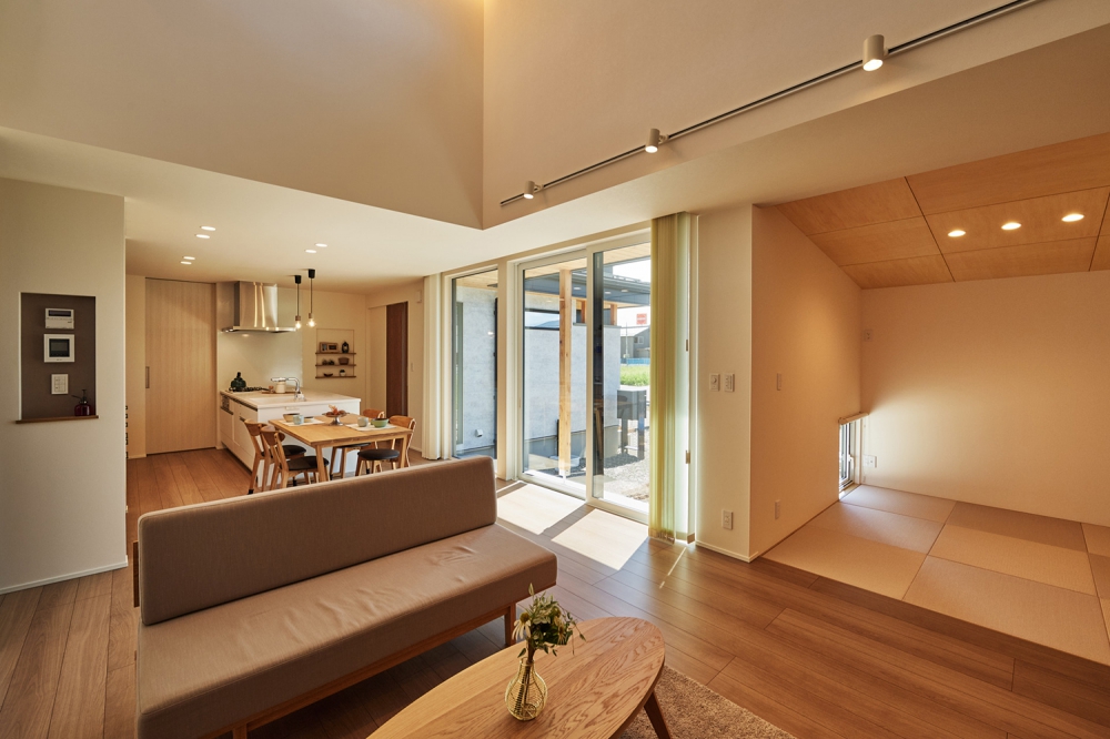 リビング隣の畳スペースは置き畳にすることで、将来畳を片付けて洋室にできるようにした