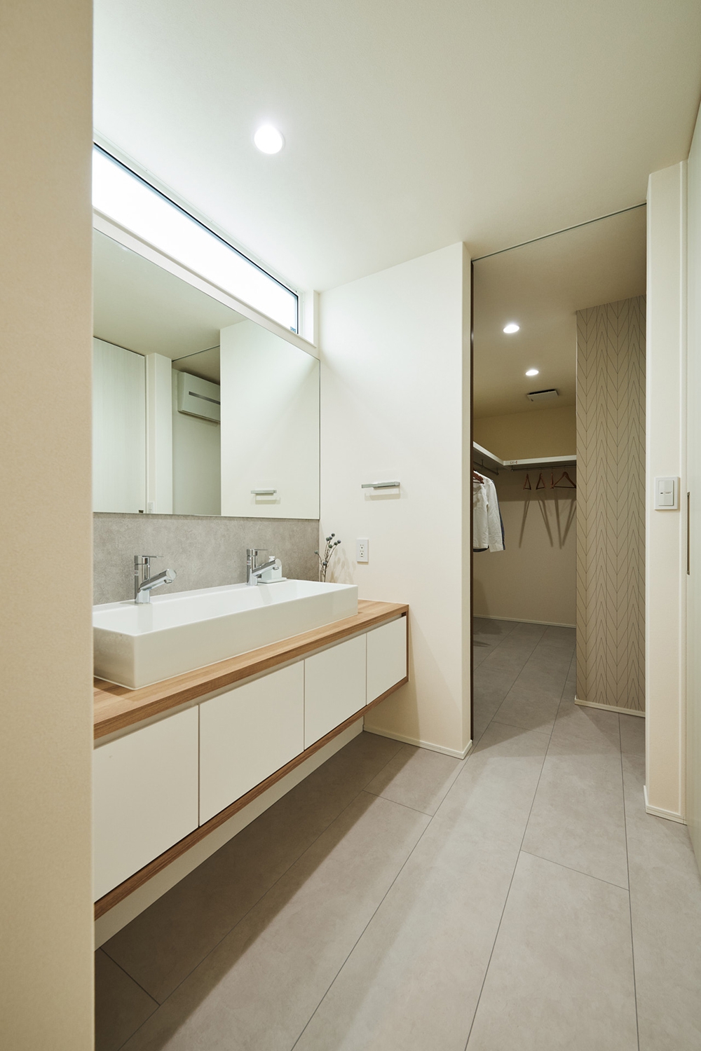玄関近くの手洗いと回遊動線で快適な暮らしを実現。