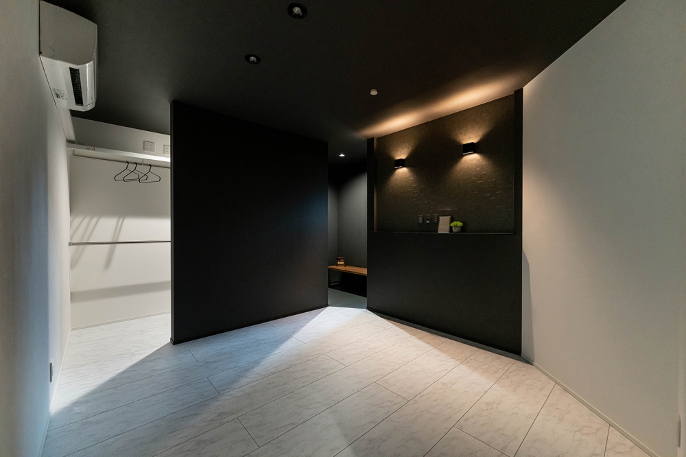 床・壁・天井まで白で統一した空間に、黒のアクセントを加えてモノトーンテイストに