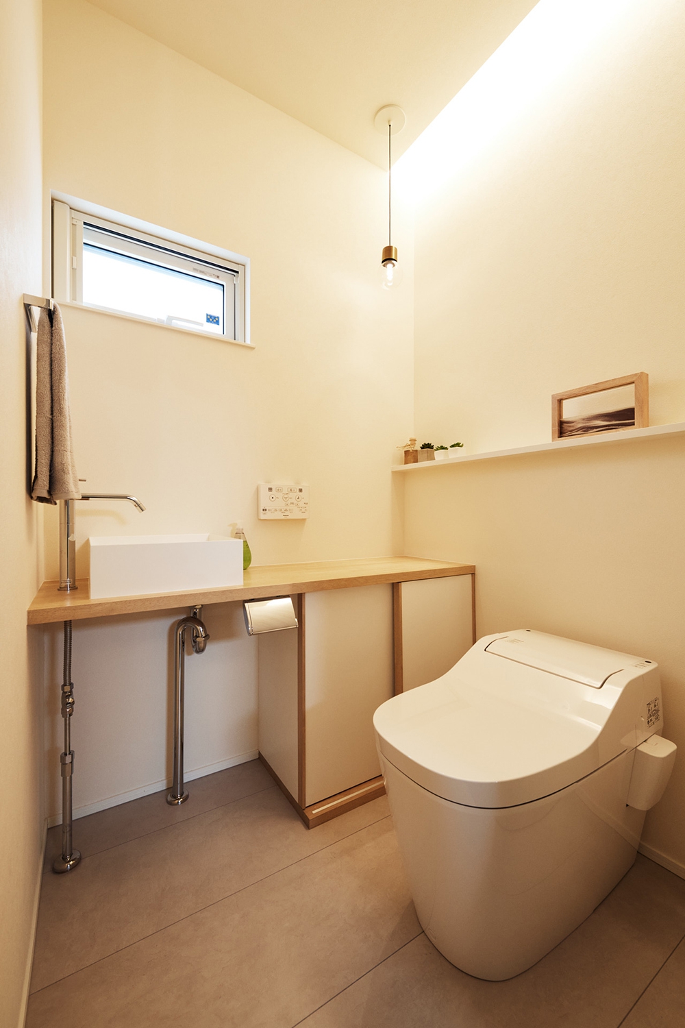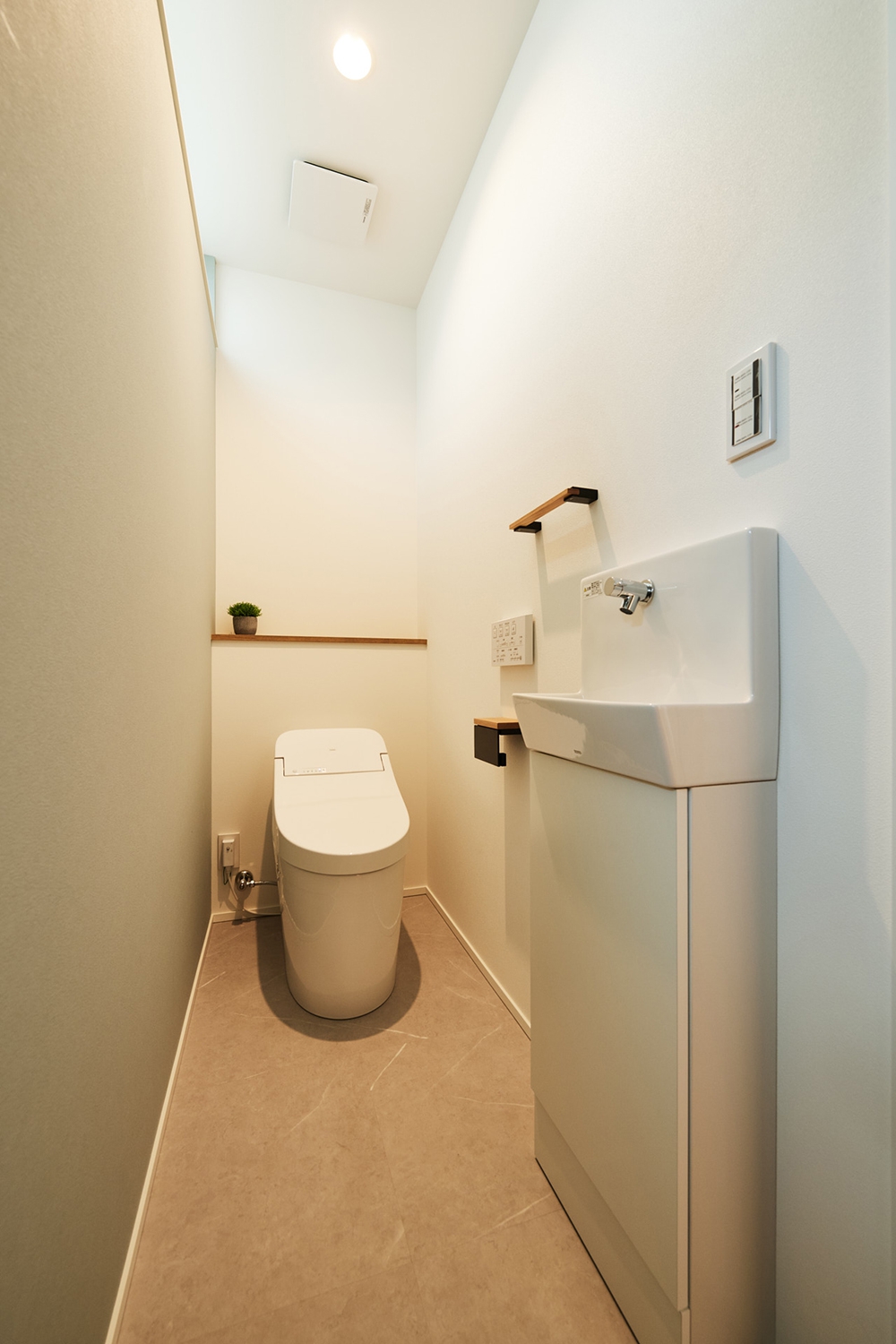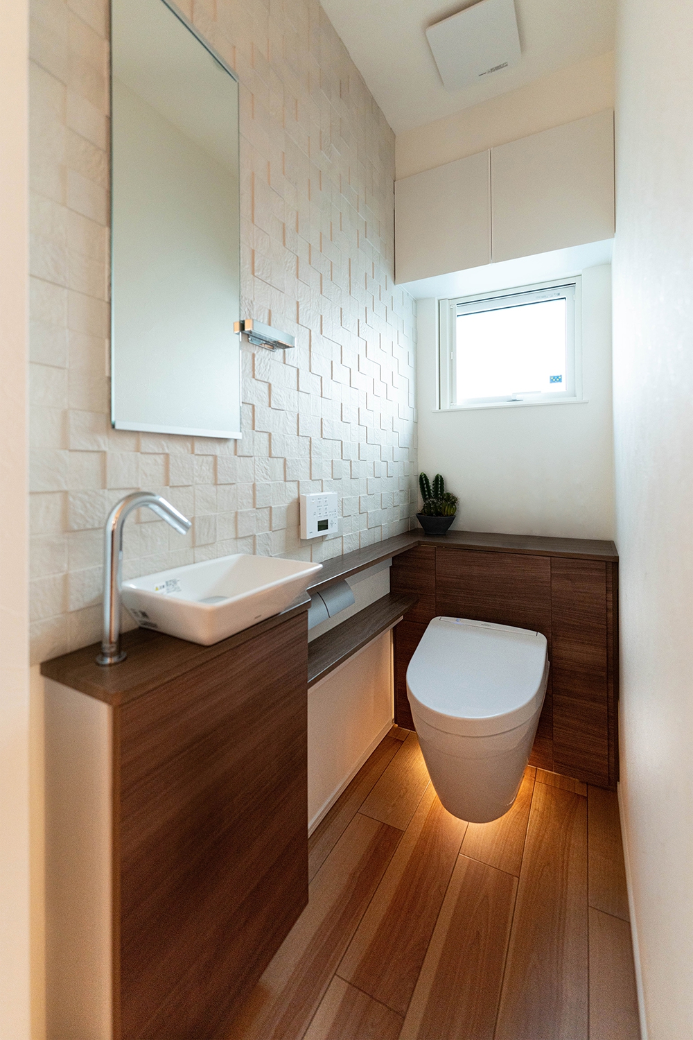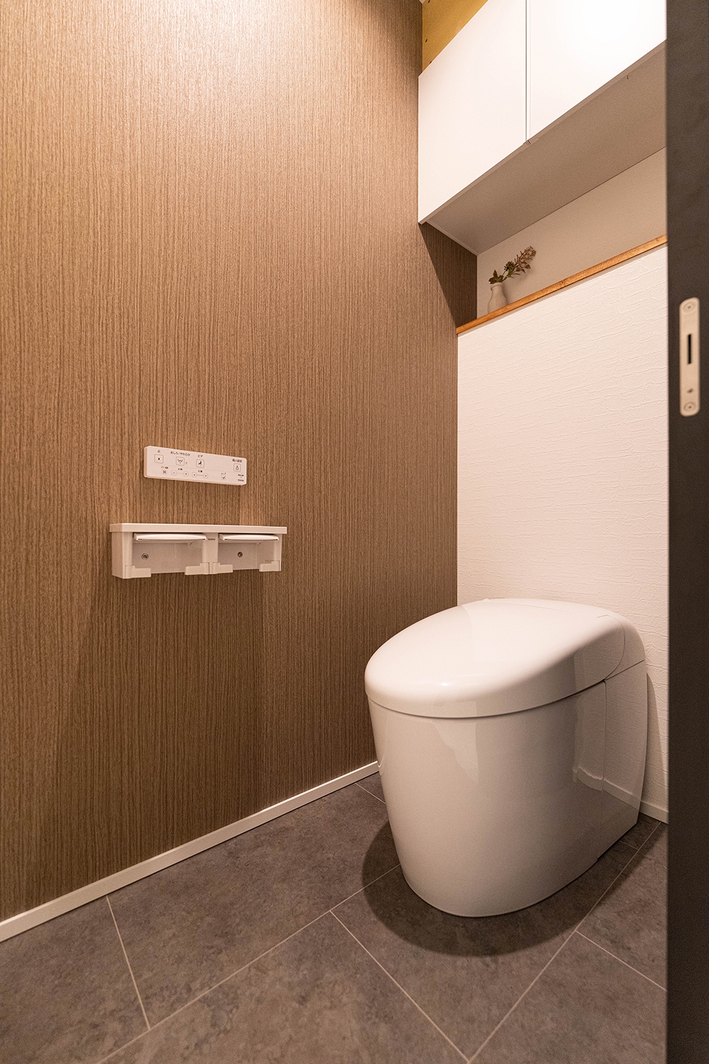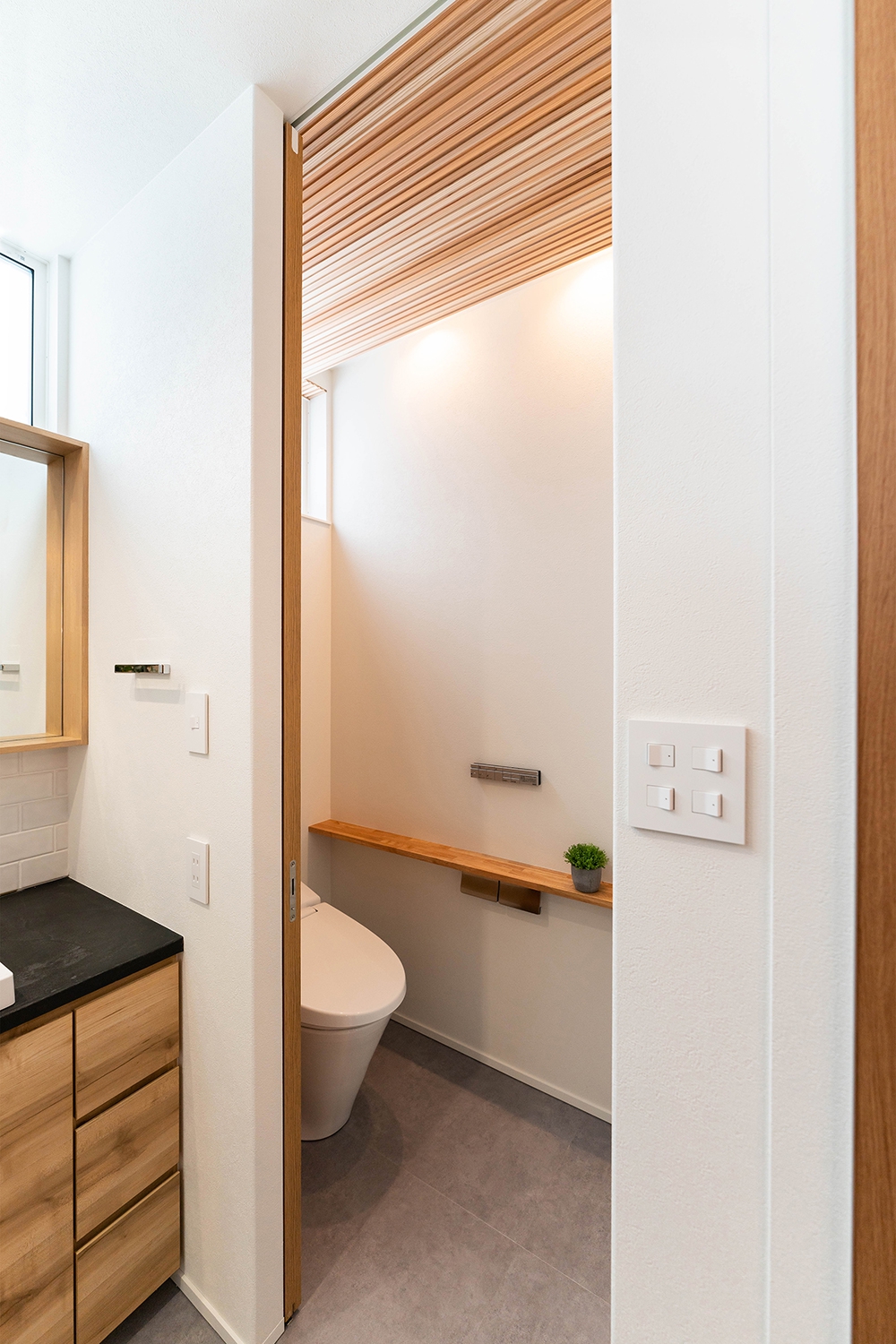 トイレは和モダンを感じる落ち着きのある空間に仕上げた