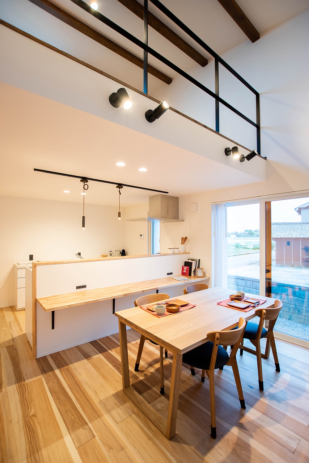 LDKの上部に設けたロフトは、お子さんの遊び場から在宅ワークをする場など暮らしに合わせて活用できる