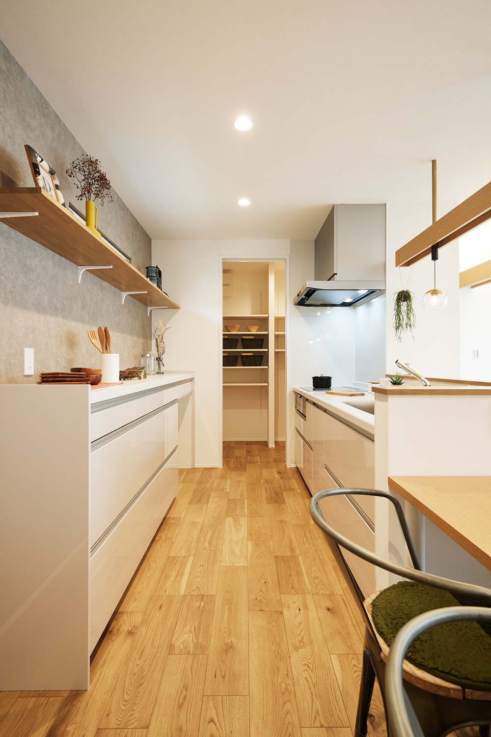 無駄なものをなくし、個性とこだわりと使いやすさ、家事動線を考え抜いた間取りとなっている。