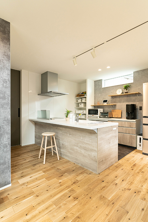 グレー×木目×白でまとめた施主様こだわりのキッチン