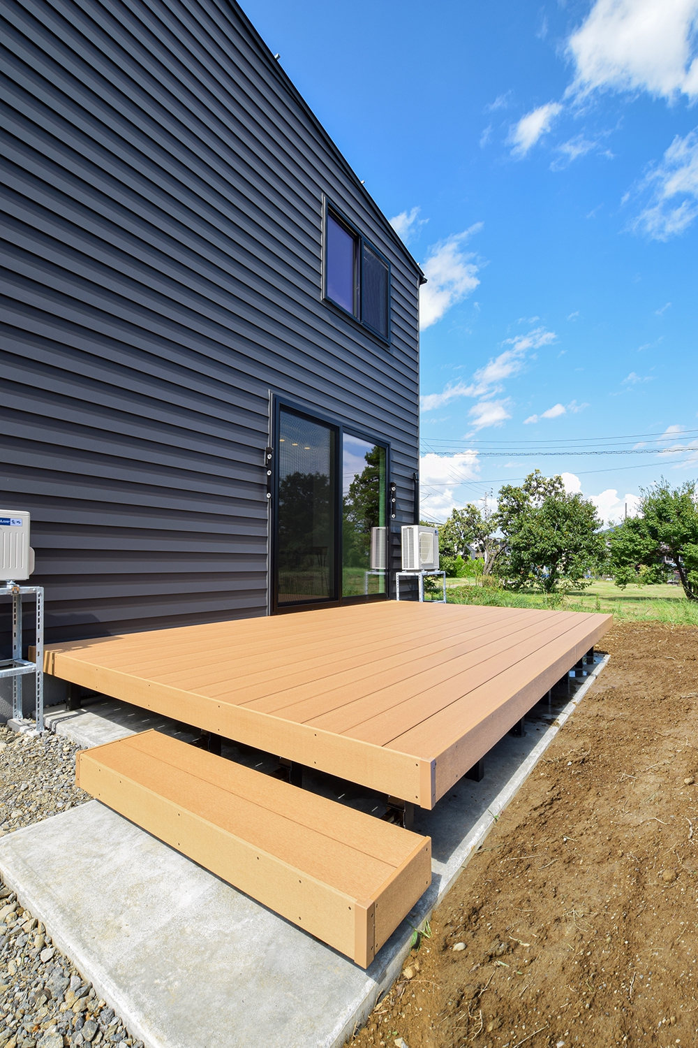 広いウッドデッキではBBQをしたり、子供とプールで遊んだり様々な用途で使える