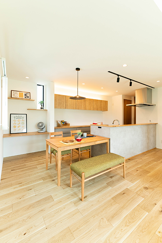 外観と雰囲気を変え、オークをメインにまとめたナチュラルな内装。