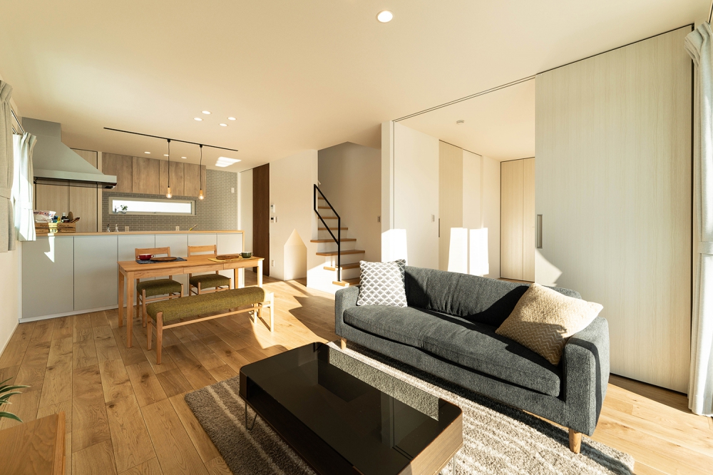 広々としたリビングと動線のいい水回りは使い勝手もいい。