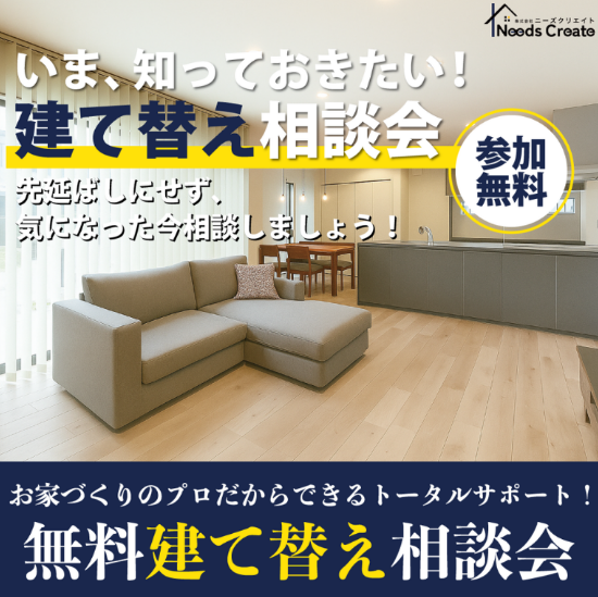 今のお住まいに「古くなってきた」「使いにくい」「この先も安心して住めるか不安」と感じていませんか?本相談会では、建て替えを検討し始めた方に向けて、住まいの現状整理から将来を見据えた住まいづくりまでを、わかりやすくご案内します。