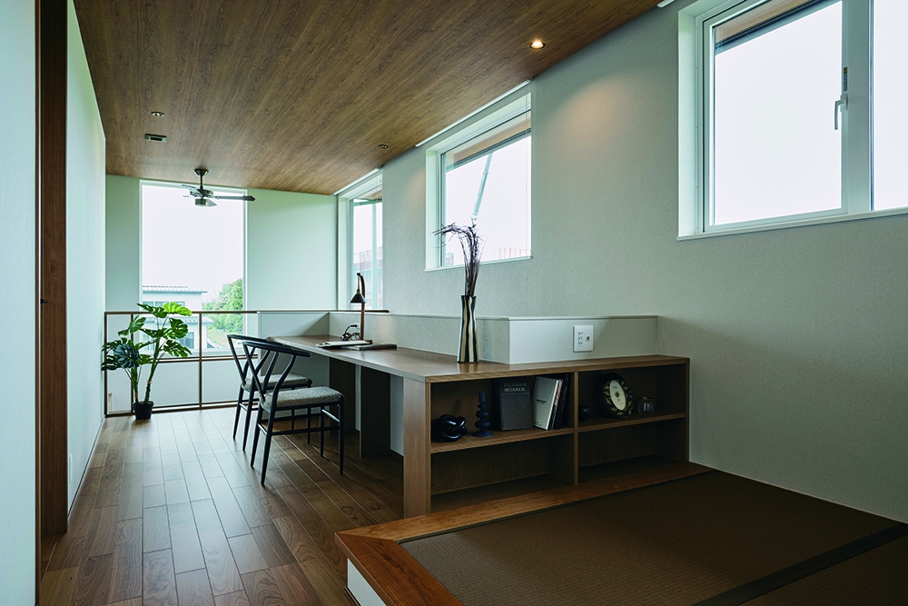 高天井リビングの横には小上がりのマルチスペースを採用。家族それぞれの暮らしに合った住まいをご提案します。