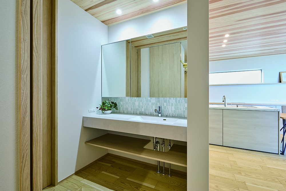 細部にまでこだわった造作洗面はシンプルながらスタイリッシュに。